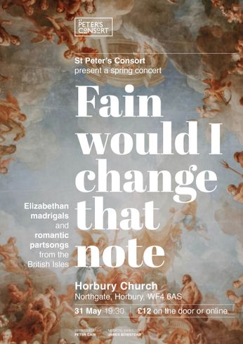 St. Peter's Consort is a mixed-voice chamber choir based in Wakefield, formed in 1983 by John S North. The choir has won widespread critical acclaim for its performances of a wide range of sacred and secular music. It has built up an enviable reputation for high standards of performance and interesting programmes which have extended the repertoire to include secular works. The varied performances over the years include services, concerts, broadcasts and visits to cathedrals and churches at home and abroad. The choir has sung in more than half the Cathedrals of England and has taken its music making to North Wales and Scotland. It has sung services in Westminster Abbey, St Georges Chapel Windsor, Notre-Dâme Paris, and in the major churches of Bruges, Ghent and Brussels.